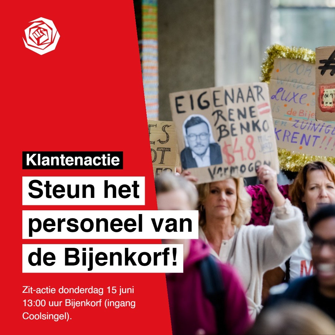 De eerste klantenactie in Rotterdam! Zo'n 30 klanten, waaronder ook leden van PvdA, SP, GroenLinks. Een zitactie, vóór stoelen in de winkels én steun voor onze loonstrijd.