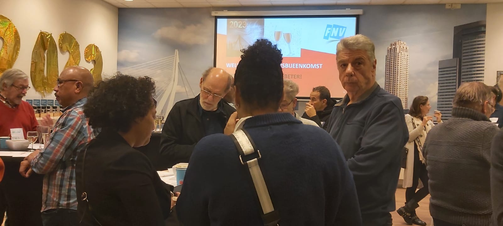 Wat een geweldige nieuwjaarsbijeenkomst gisteren. 130 leden, niet-leden, oud lokaal kaderleden, bestuurders en lokale politici hebben met ons het komende jaar ingeluid. Bemoedigende en inspirerende toespraken van Yasmine (kaderlid lokaal FNV Rotterdam), Kitty (vicevoorzitter FNV) en Lieke (van het “Nederland verdient beter” campagne team).